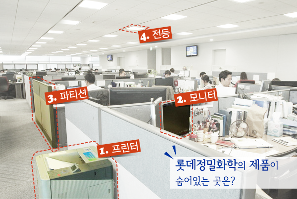 다음 중 롯데정밀화학의 제품이 숨어 있는 곳은 어디일까요?