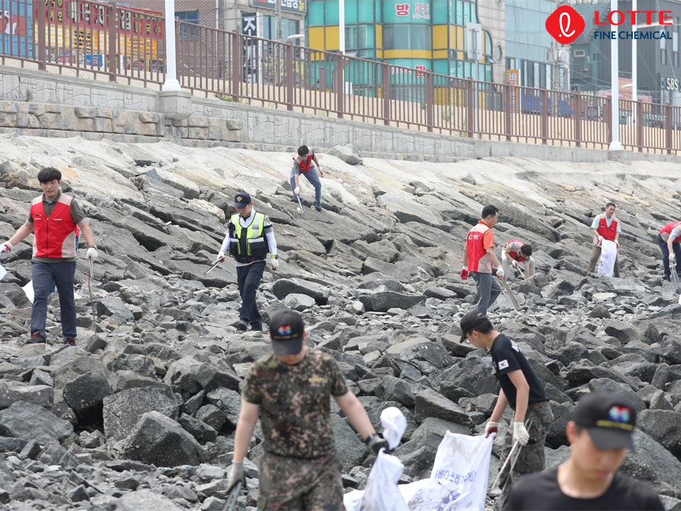 지역주민, 롯데정밀화학 임직원, 인천해경 신항만파출소 직원, 2506부대 1대대 분들이 함께 참여하였어요.