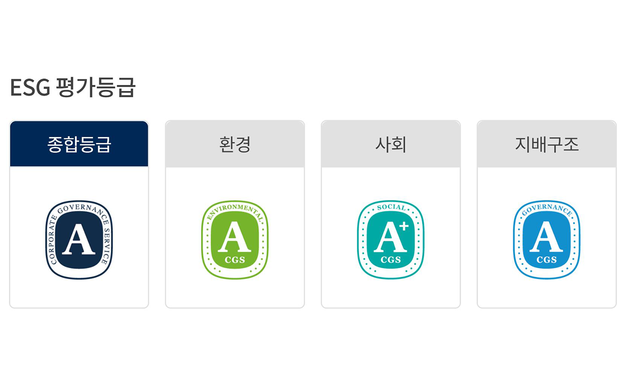 한국기업지배구조원 ESG평가 4년 연속 종합 A 등급 달성