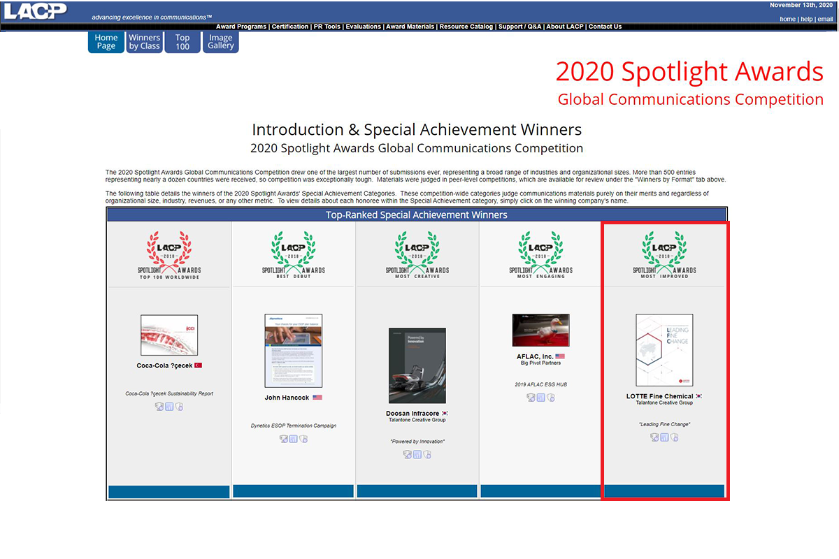 □ 2020 LACP Spotlight Awards : 3개 부문 수상