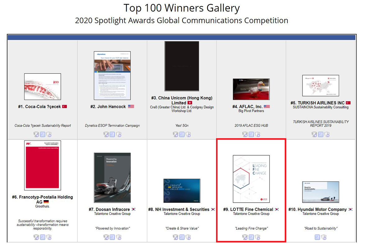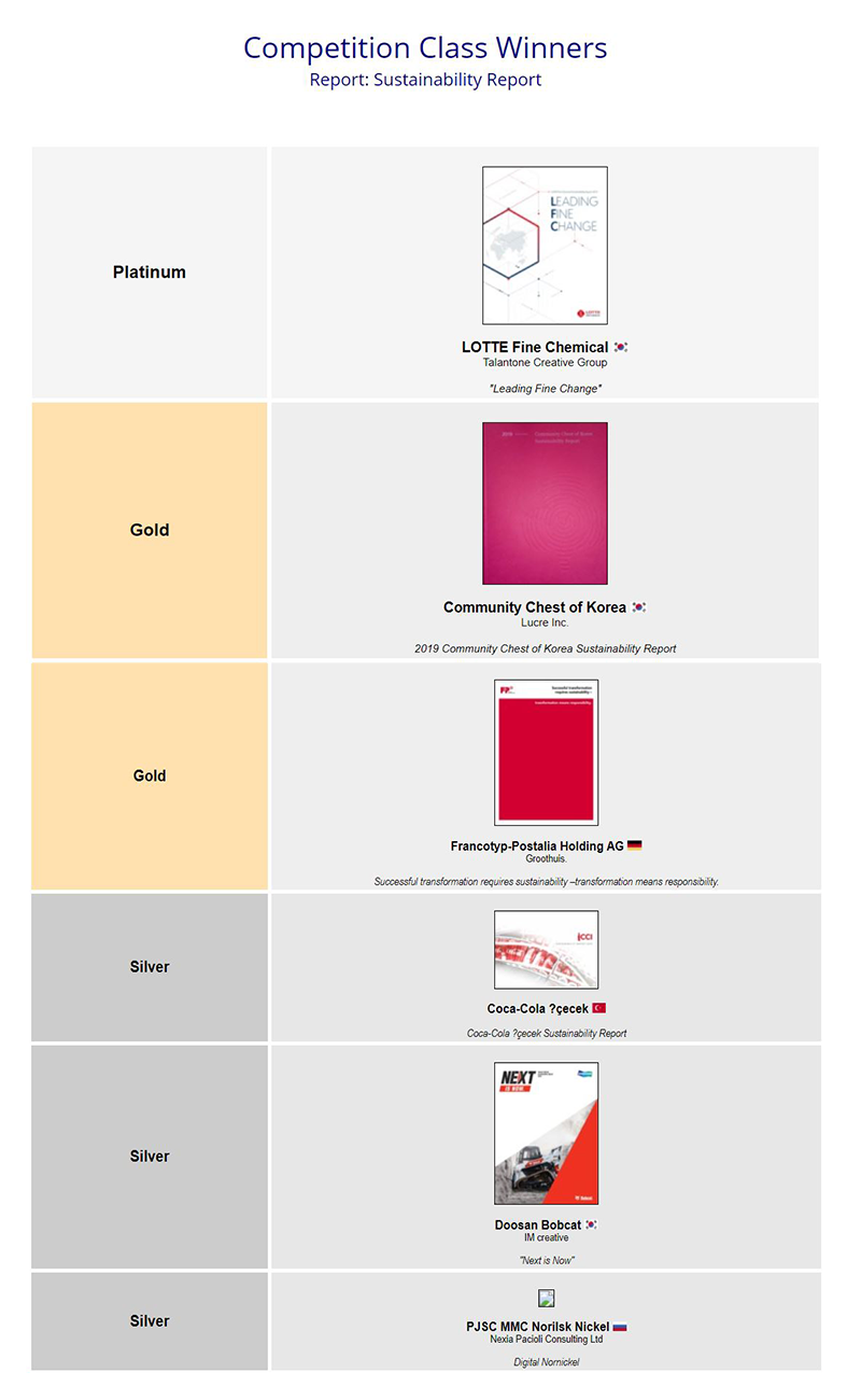 지속가능경영보고서, 해외 마케팅자료 경연대회 수상