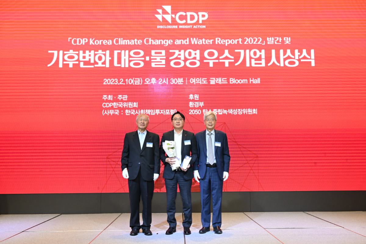 롯데정밀화학은 지난 2월 10일, CDP 한국위원회가 주관하는 ‘2022 기후변화 대응·물 경영 우수기업’ 시상식에서 물경영 부문 특별상을 수상했습니다.
